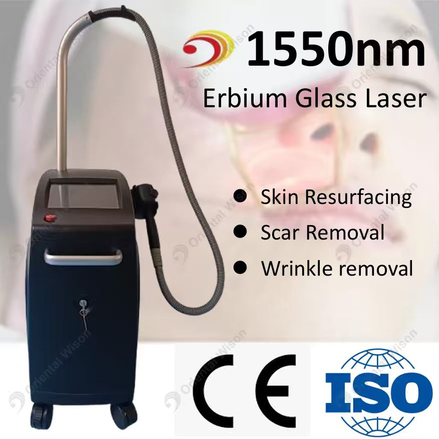 It's a non-invasive Er: glass laser system with a wavelength of 1550nm. The wavelength of 1550nm applies thermal pulses deeply into the derma through the epidermis, where they are absorbed by the water in the tissue and leads to high temperature inside tissue. The tissue is heated gently, and results in decomposition of cell, while the skin surface is undamaged.