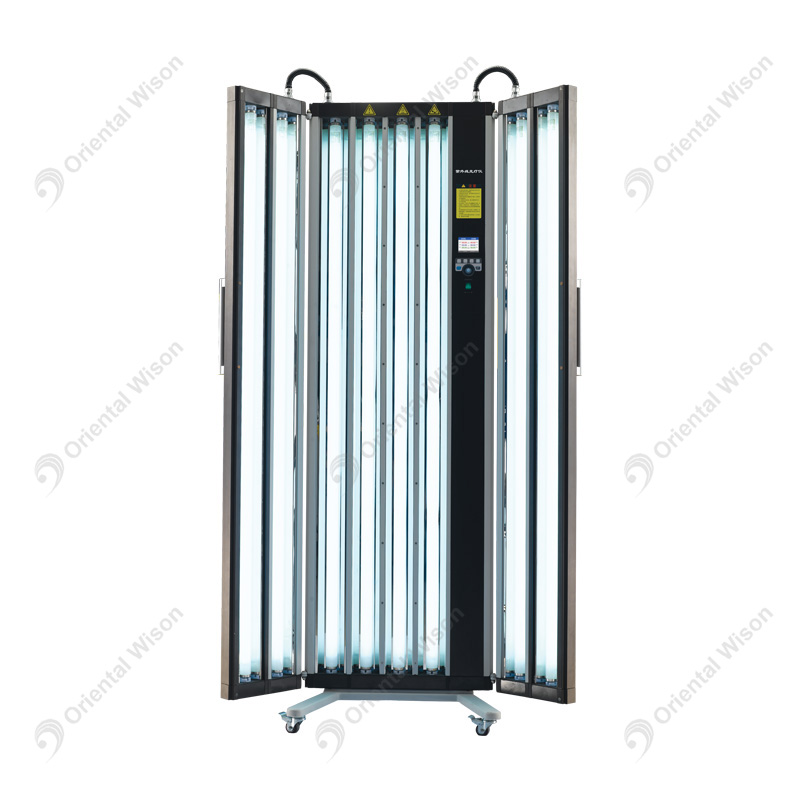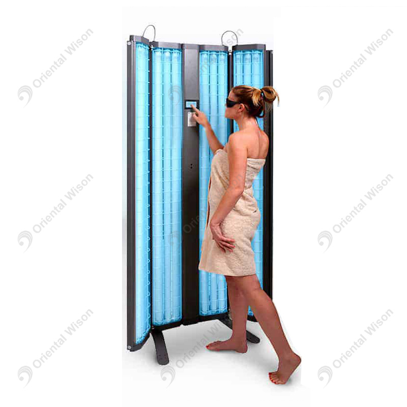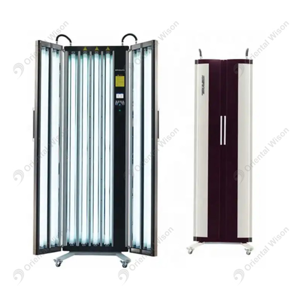 High-quality Medical Phototherapy Lamp UVB Skin Disease Remove Machine is a full-body UV-irradiation phototherapy device. The UVB machine uses a 3.2" color LCD. The instrument adopts a double-door structure inside and is equipped with 8 Philips 100W special imported UV lamps. Every time the light source is used, the irradiation is very stable, and the irradiation area can cover the whole body. There are independent PUVA and UVB time-dose irradiation systems that can guarantee treatment precision. The UVB machine is designed with a gas-cooled ergonomically designed frame, a high-quality all-aluminum alloy housing, and a standard 1-year warranty.